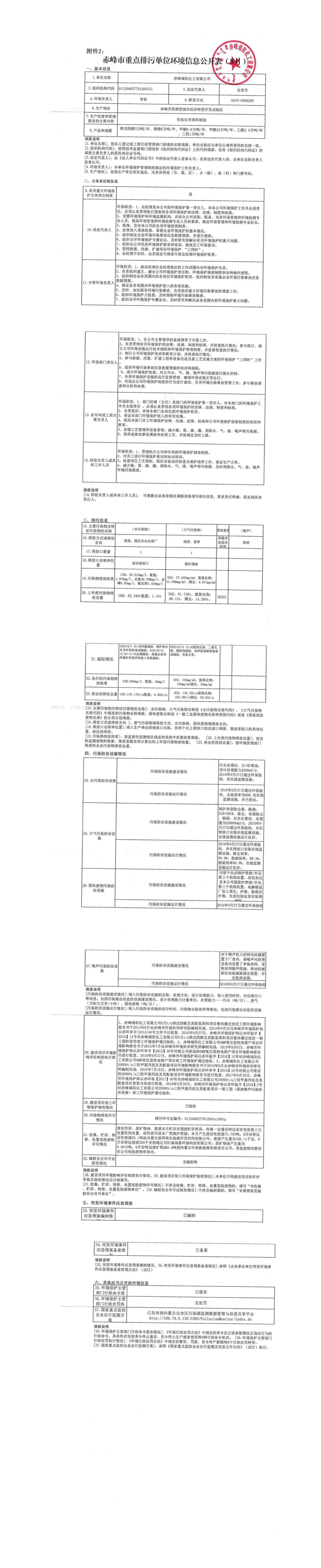 赤峰市重點排污單位環(huán)境信息公開表【8月】